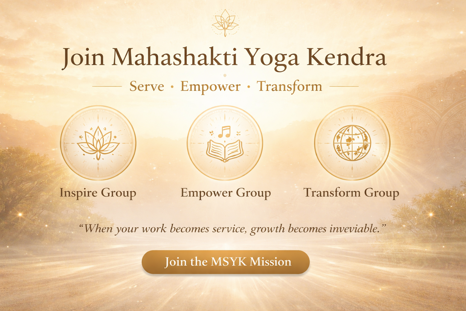 Every journey at MSYK is built upon our 4S Pillars — an integrated path that blends sacred practice - personal discipline, sacred learning - inner study, sacred service - service, and sacred community - spiritual companionship.